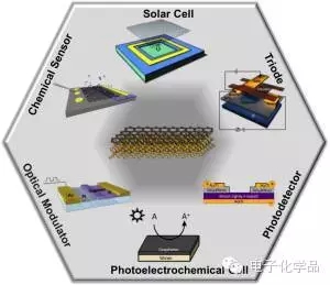 碳/硅异质结太阳能电池的快速发展,充分证明了该模型科学研究的价值以及实际应用的潜力。碳/硅异质结太阳能电池将朝向更薄、更便宜、更高效的方向发展,特别是有望在可融合的轻便薄膜类产品中得到应用,如智能电子产品、可穿戴器件、医疗监测、随身军事设备等方面。此外,碳/硅异质结的发展也为其他二维材料异质结构与异质结拓展应用的研究(如光电探测器、光调制器、化学探测、光电化学电池、三极管等)奠定了坚实的基础(图3)。